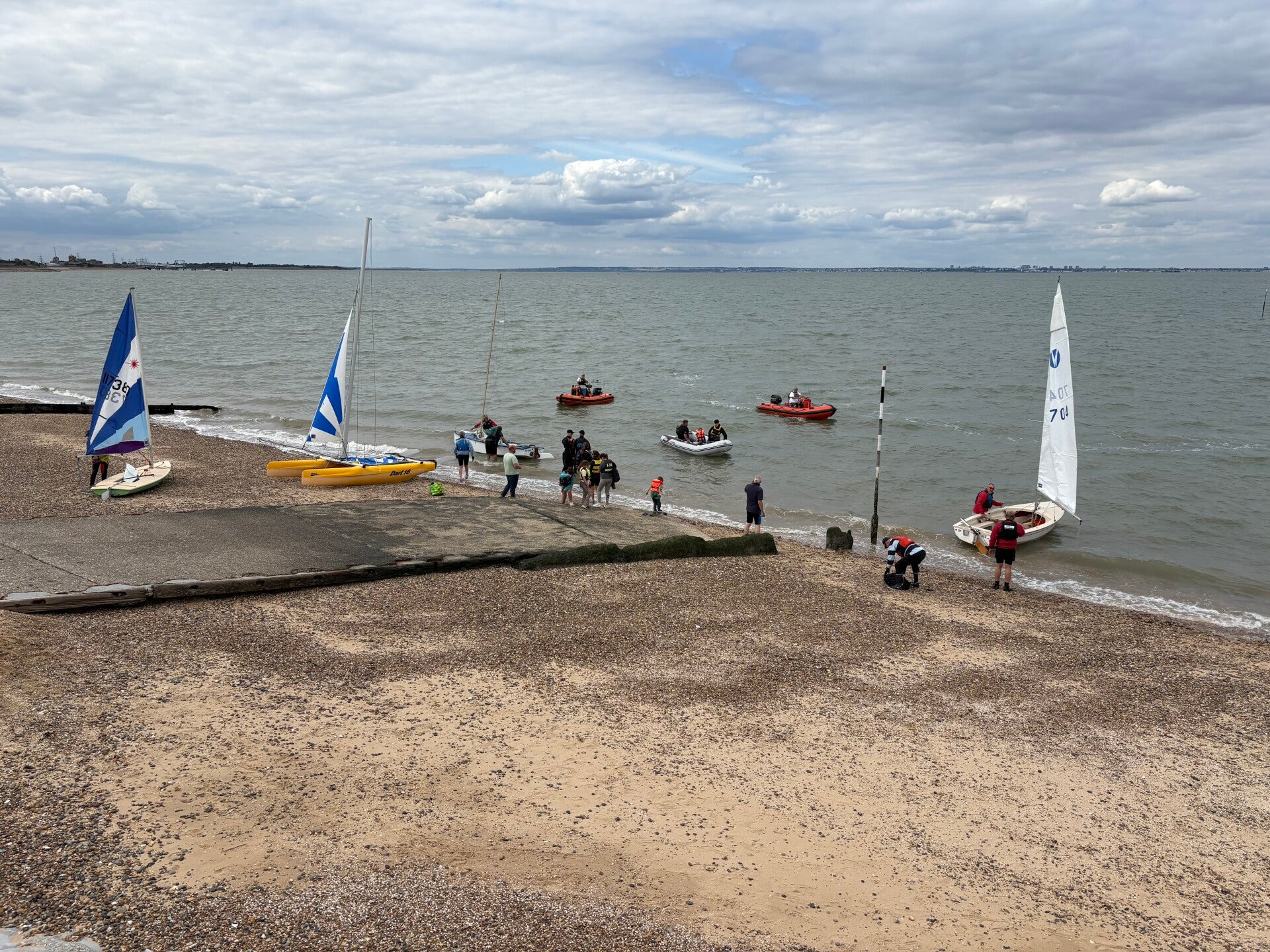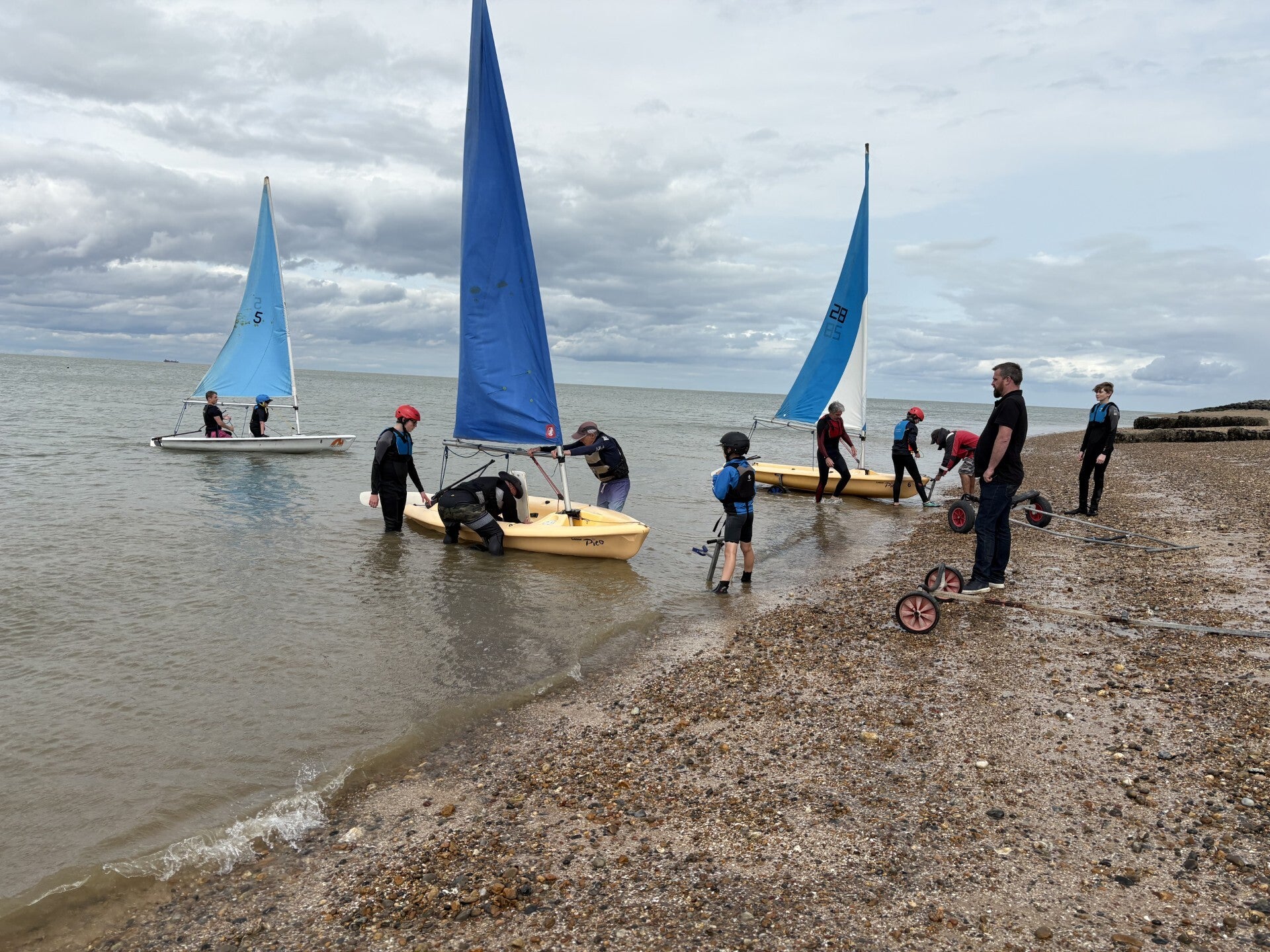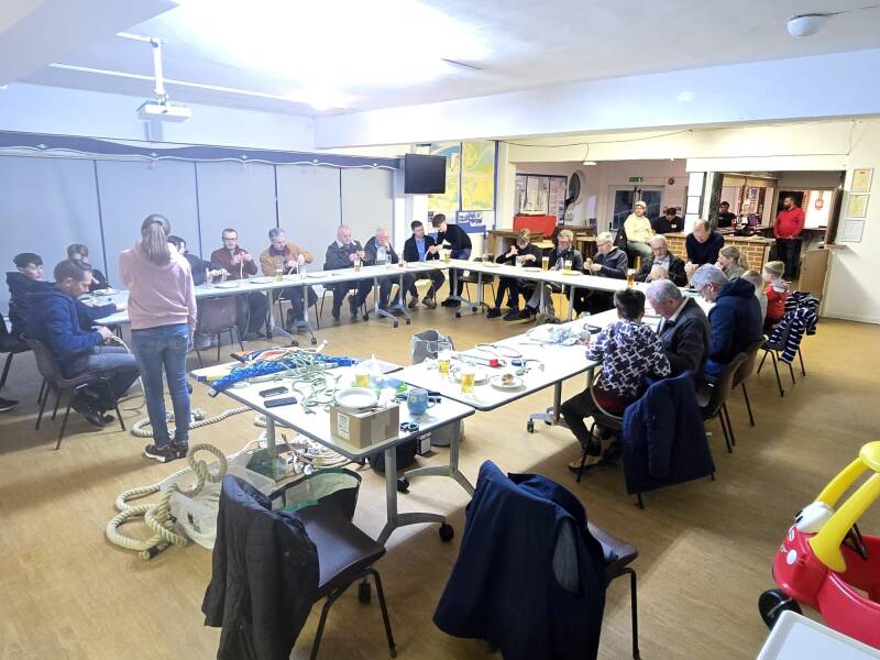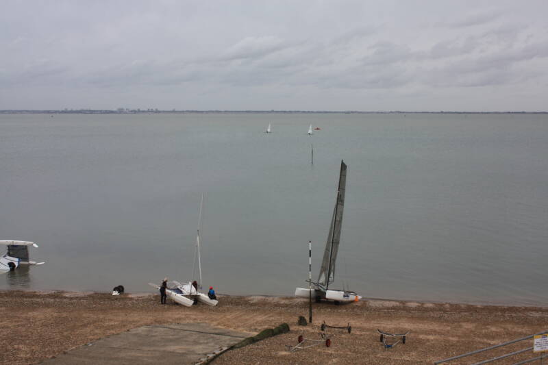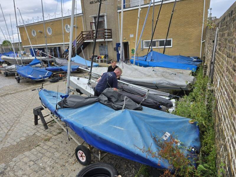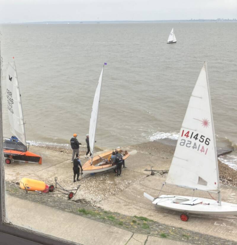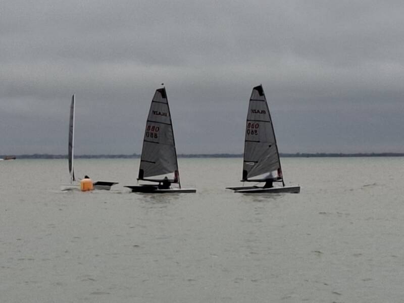 Wind steady at 25kts. Clean start from the remainder of the fleet. 1383 decided to tack early and head out to sea. The other 3 boats went inshore. Naturally it was the locals who took the advantage, creating a substantial lead rounding the windward mark well ahead of the competition. The gybe mark giving everyone a challenge. Many tacked except 1383 and 1116 who failed to capitalise and fell in. a quick recovery was witnessed with glee from the committee boat, but put them at the back. No point carrying on, they decided to retire. With 3 boats left and evenly spread the race was finished with 1383 taking the win, followed by 1349 (Shaw/ Little) and 1373 (Marshall/Dixon).